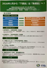 下請代金支払遅延防止法が令和8年1月1日より改正され、中小受託取引適正化法に法律名も変更されることから中小企業庁と公正取引委員会では改正内容に関する説明会を開催します。