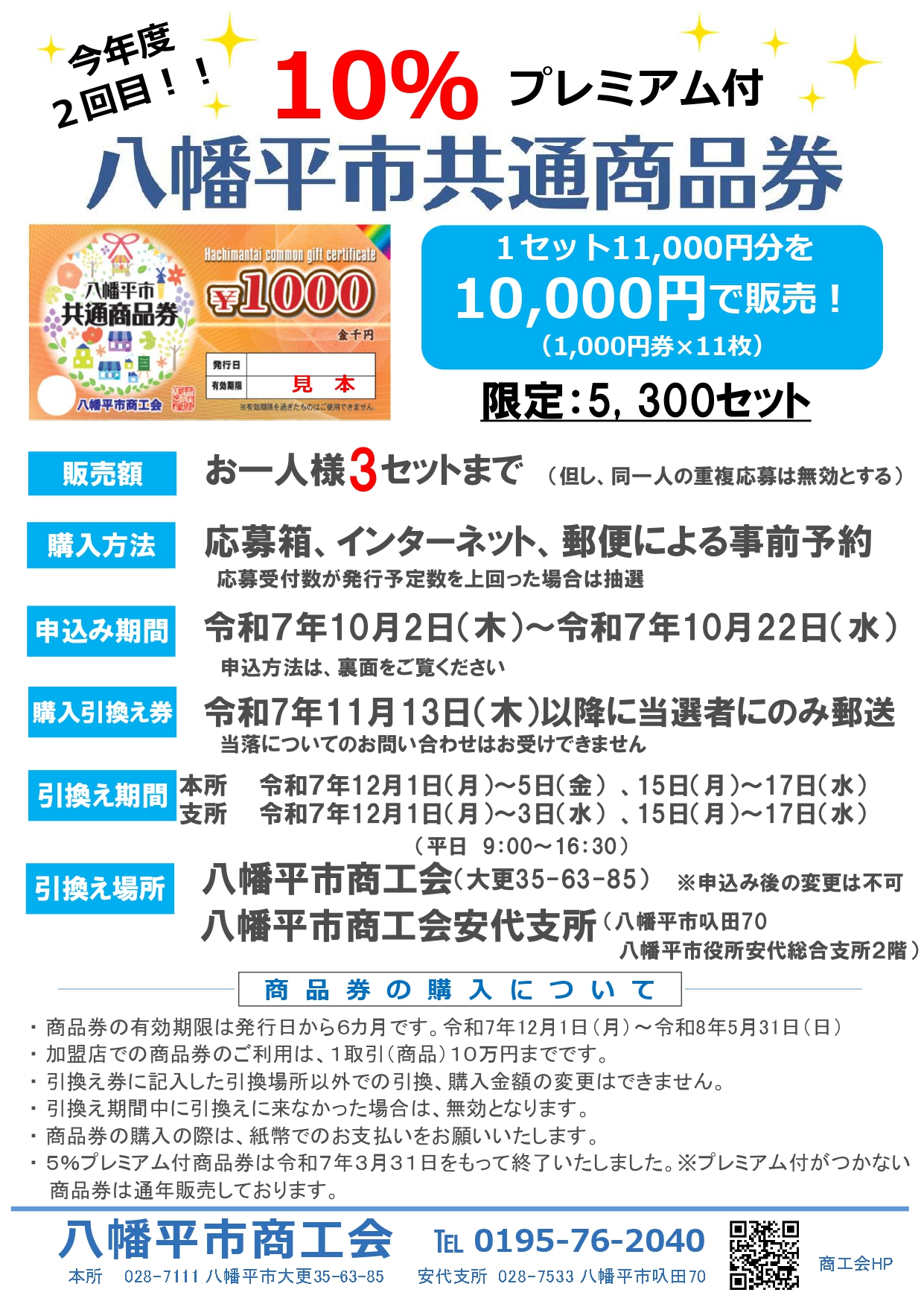 八幡平市商工会では、地域経済の活性化を目的に八幡平市の補助金を活用して市内の多様な店舗で利用できる「10%プレミアム付共通商品券」を発行します。