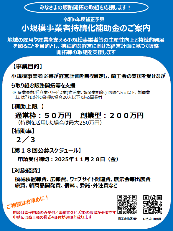 小規模事業者持続化補助金の公募要領が公開されました!