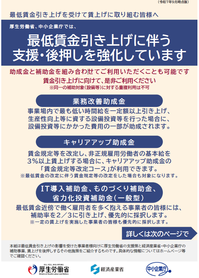 賃金引上げに向けて、助成金や補助金をご利用ください!