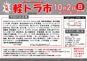 2022年10月2日(日)「元祖 軽トラ市」のチラシと配置図になります。
