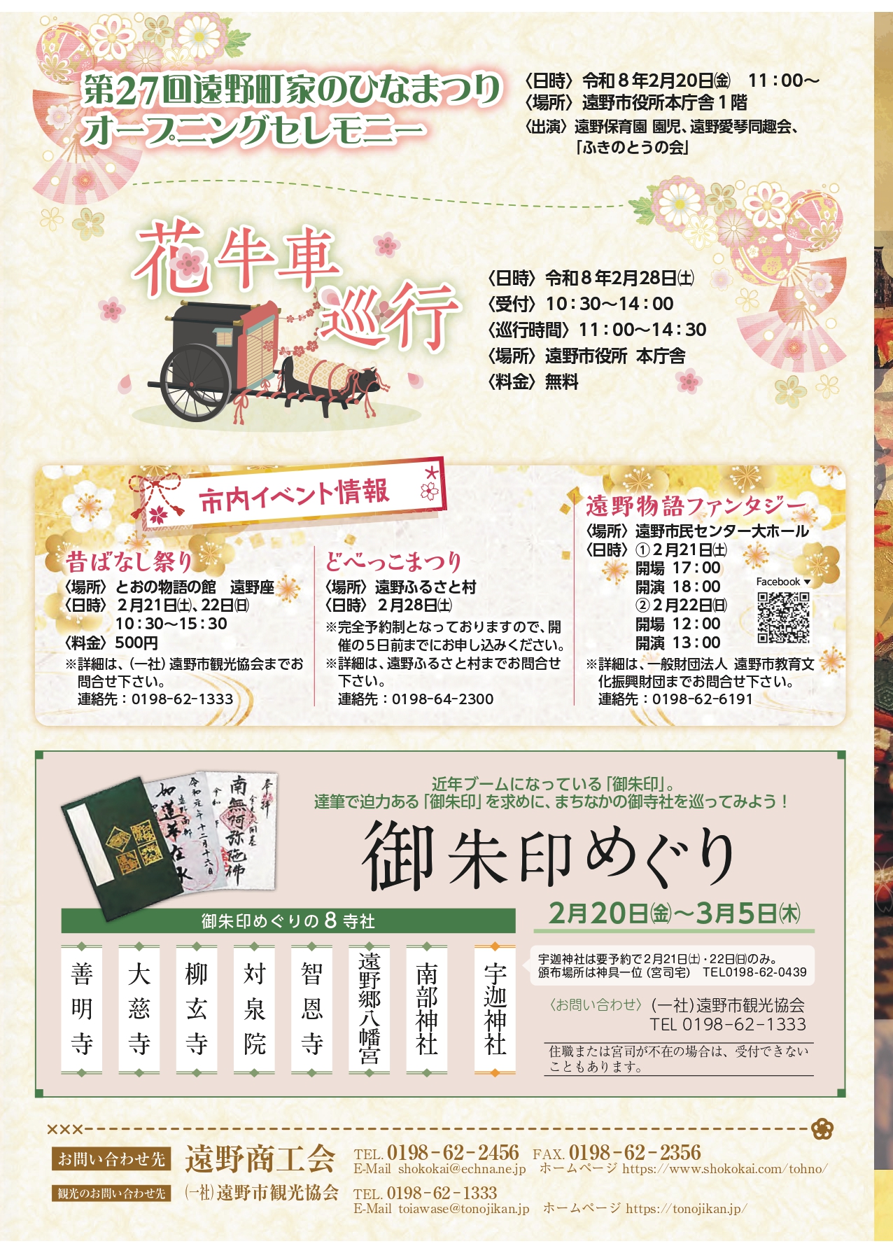 第27回遠野町家のひなまつりのパンフレットが完成しましたので公開いたします。